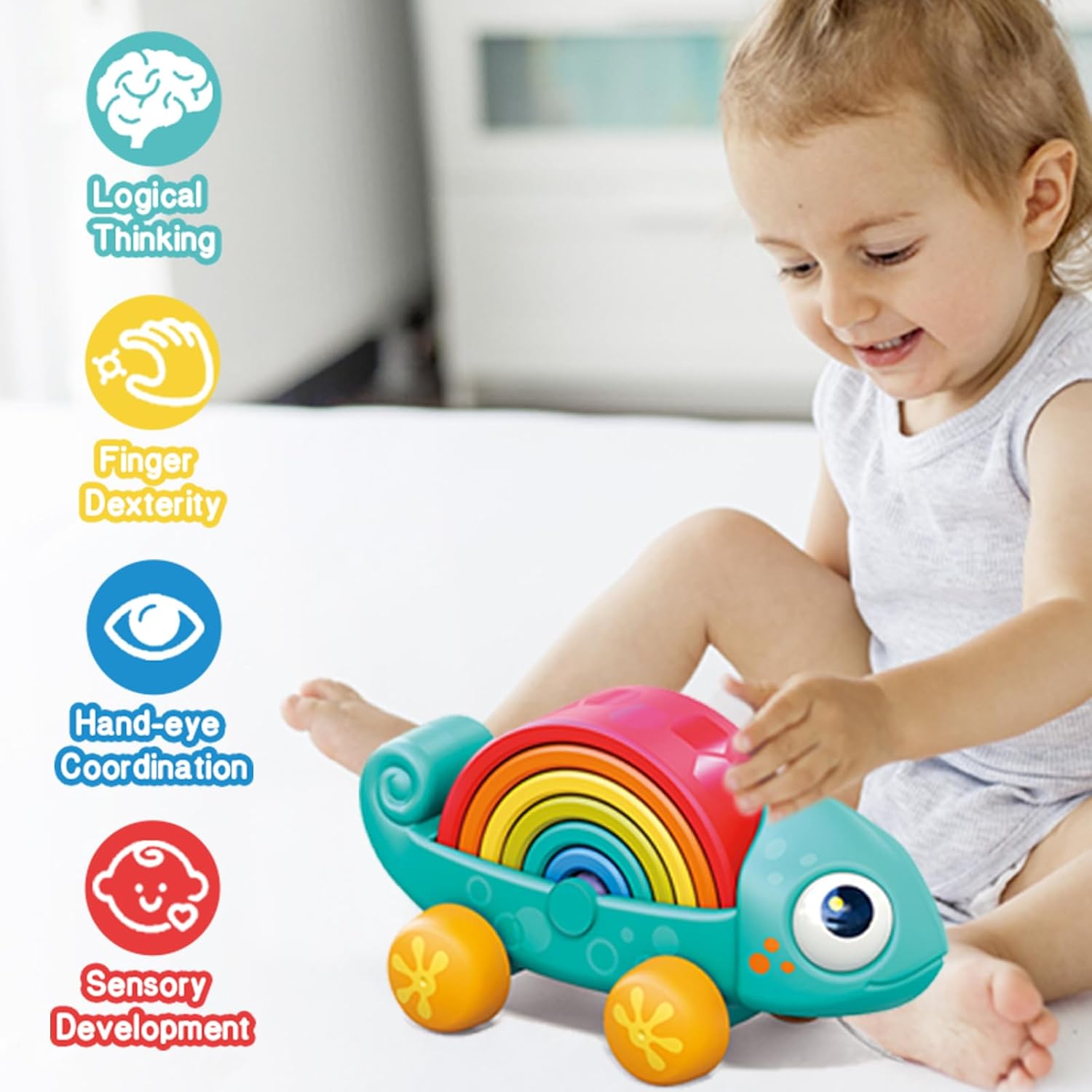 - 【Early Educational toy】 Multifunctional rainbow chameleon is a montessori toy that can exercise a baby's observation skills, hand-eye coordination, cognitive abilities, and more. Open the door to early learning and create a fun-filled world for them!